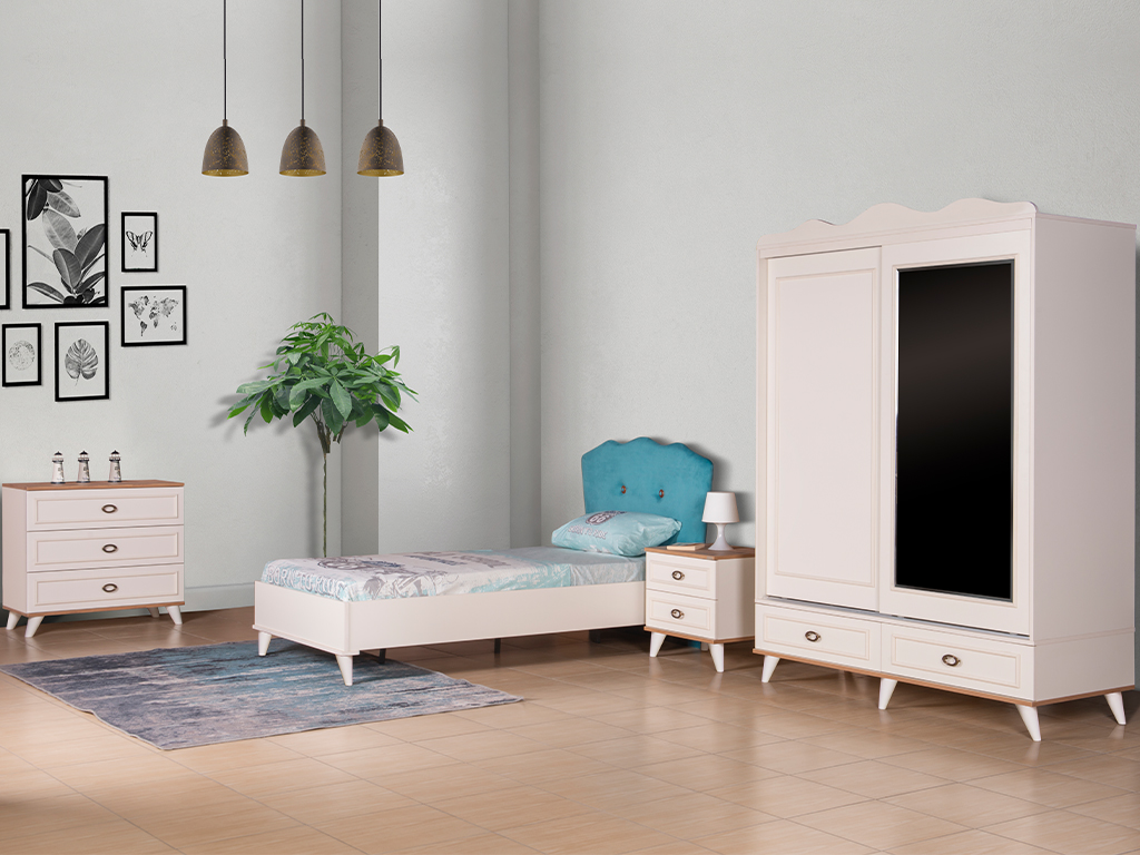 Sürgülü Dolap + 100*200 Karyola + Şifonyer + Çalışma Masası + Komodin + Kitaplık