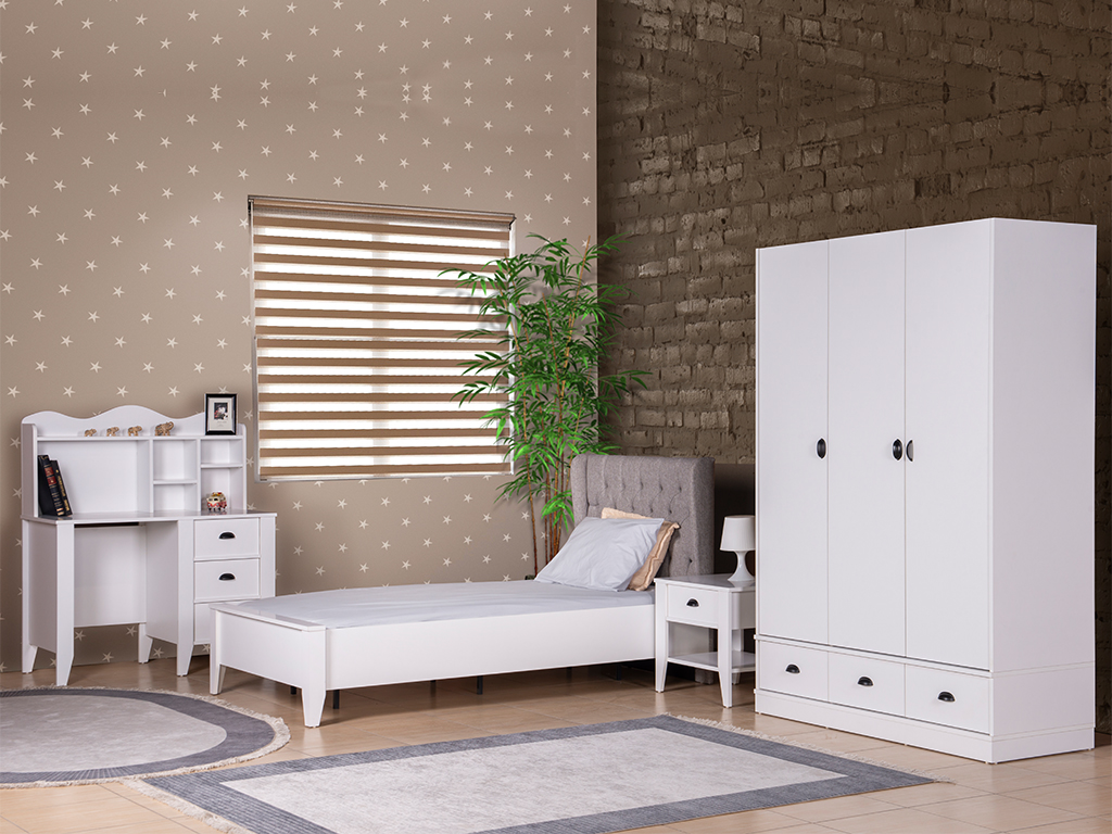 3 Kapaklı Dolap + 100*200 Karyola + Şifonyer + Çalışma Masası + Komodin