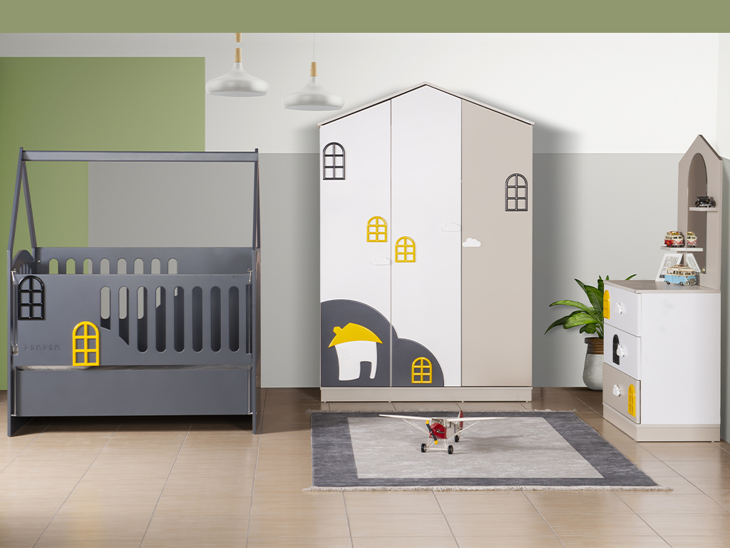 3 Kapaklı Dolap + 70*130 Beşik + Aynalı Şifonyer