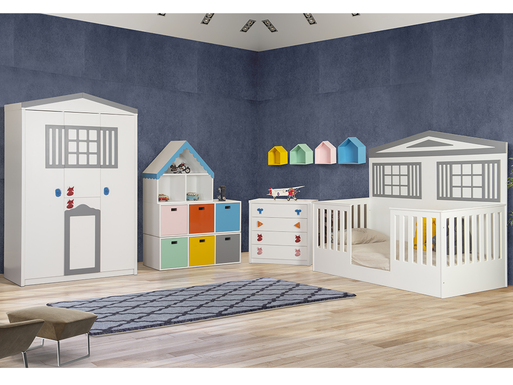 3 Kapaklı Dolap + 100*200 Montessori Karyola + Şifonyer + Oyuncak Dolabı + Çatılı Kutu