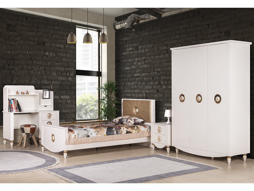 3 Kapaklı Dolap + 100*200 Karyola + Şifonyer + Çalışma Masası + Komodin
