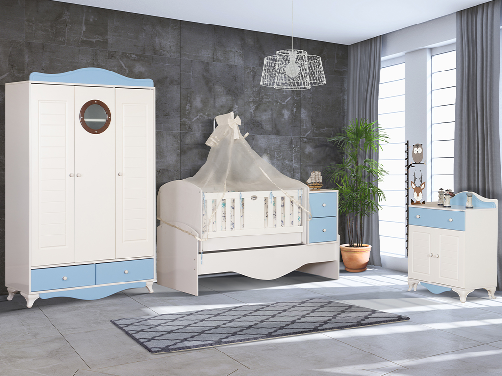 3 Kapaklı Dolap + 70*130 Büyüyen Beşik + Şifonyer