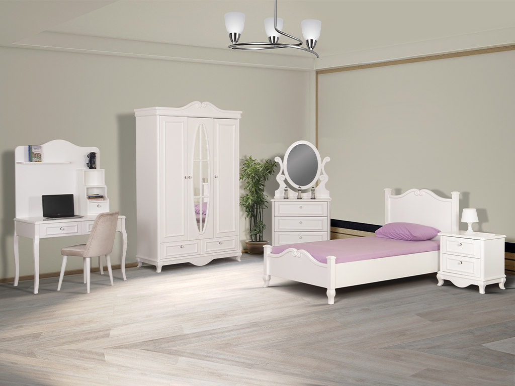 3 Kapaklı Dolap + 100*200 Karyola + Şifonyer + Çalışma Masası + Komodin