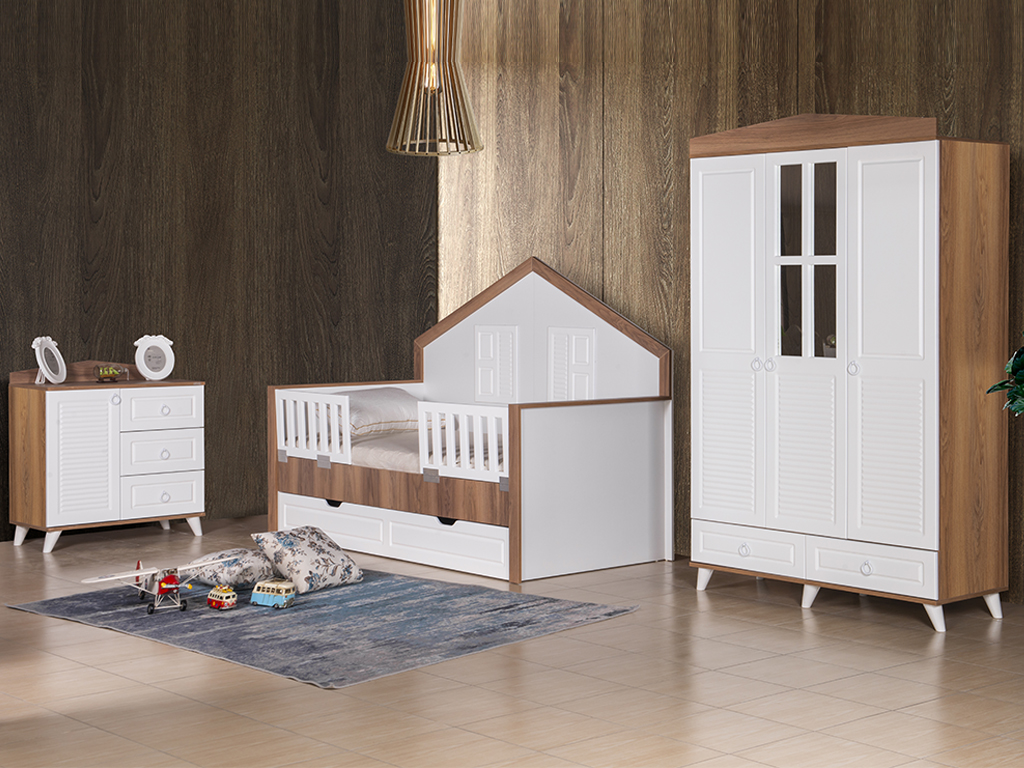 3 Kapaklı Dolap + 100*200 Karyola + Şifonyer + Çalışma Masası + 90*190 Kardeş Kasa + Korkuluk